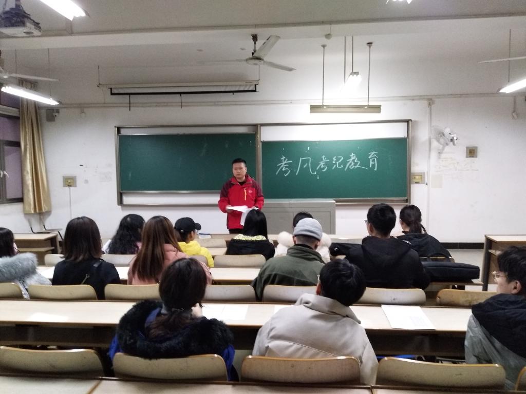 各年级各班级在综合楼教室分别开展了考风考纪教育主题班会,各年级辅导员出席了本次班会。
