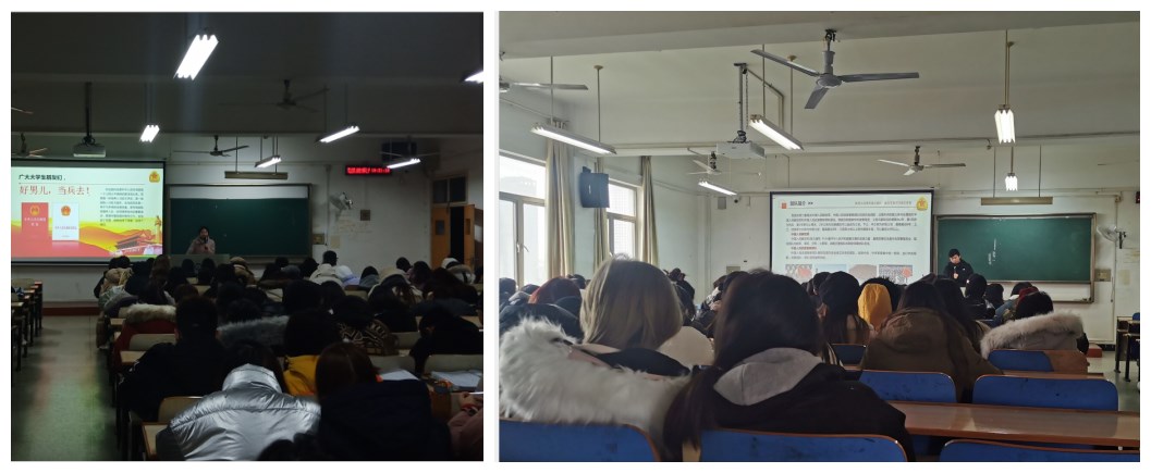 高度重视新年春季征兵宣传工作,于2020年12月13日对全体学生开展参军入伍政策宣讲课,各年级辅导员为本次入伍政策宣讲课主讲人。