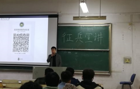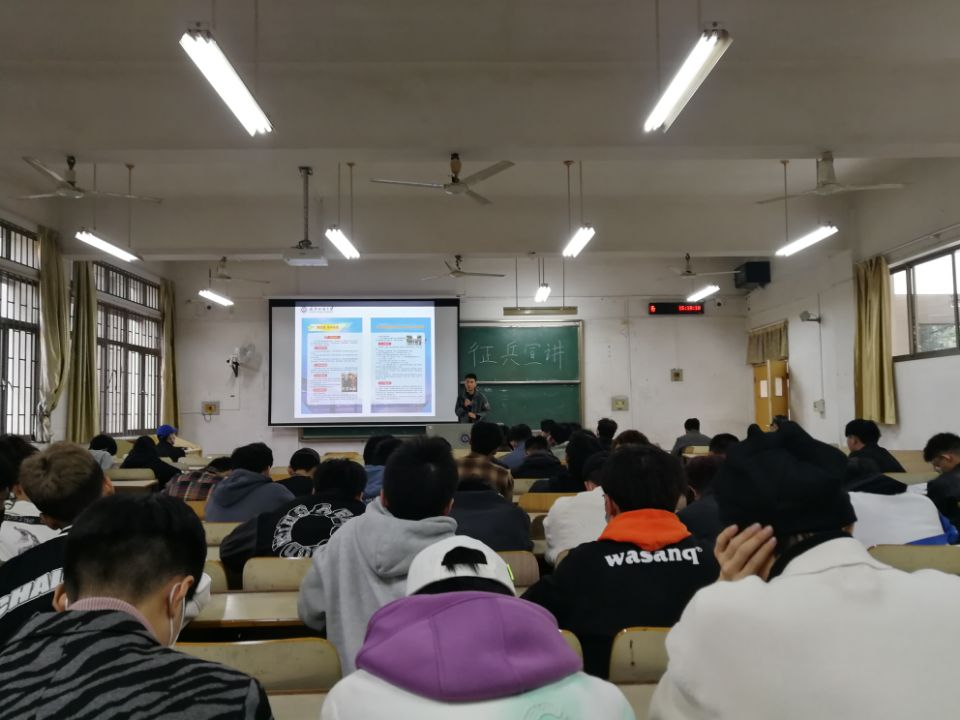 于11月18日在5110教室开展征兵活动。学院不仅邀请了高年级退役士兵张成睿和高彦聪两位同学,还邀请了外语学院退役后考取研究生的于天伦同学。