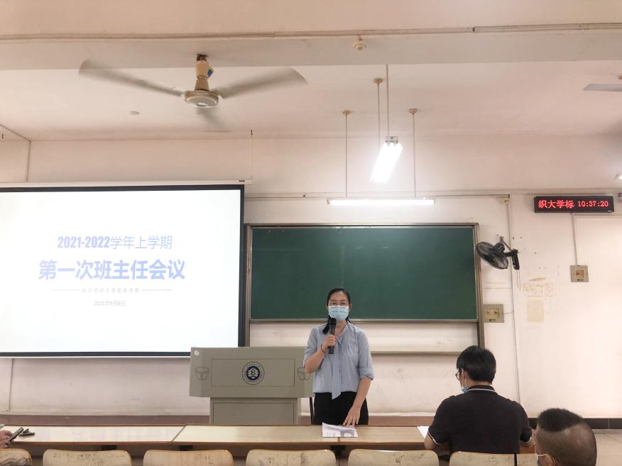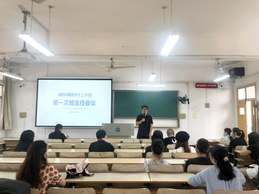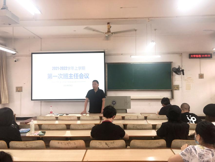 在南湖校区综合楼5210召开新学期班主任培训交流会。学院党委书记熊兆飞,党委副书记黄勇,全体辅导员以及班主任参加会议。