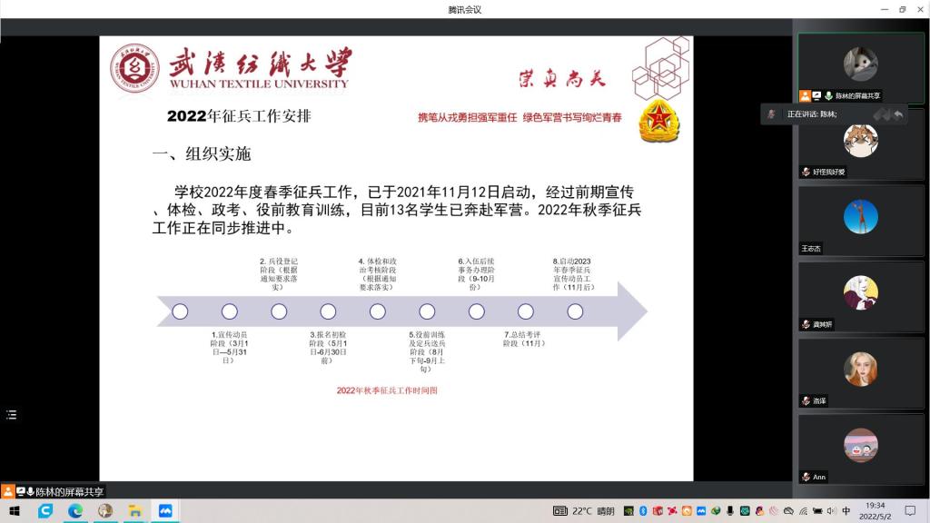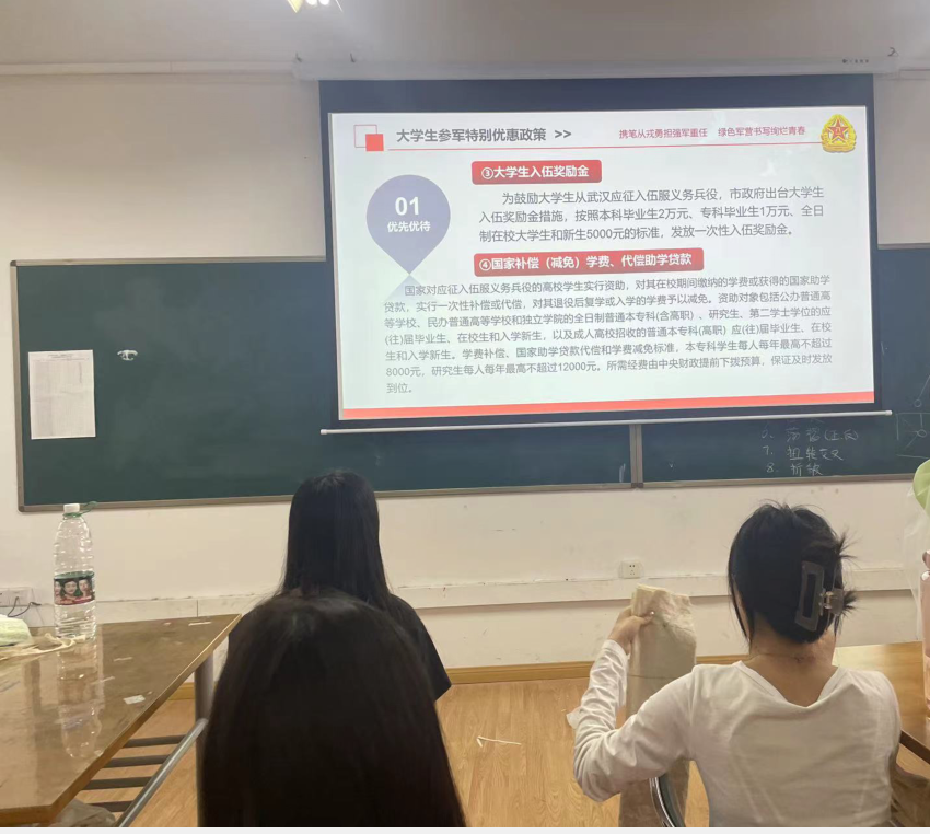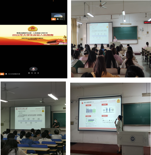 四个年级辅导员详细介绍了秋季征兵的报名时间、应征流程、相关政策,还结合本学院多名参军入伍同学在部队的表现和复员同学享受到的考研政策,充分调动同学们报名应征的积极性,鼓励同学们暂别校园、携笔从戎、将爱国之心化为报国之行。