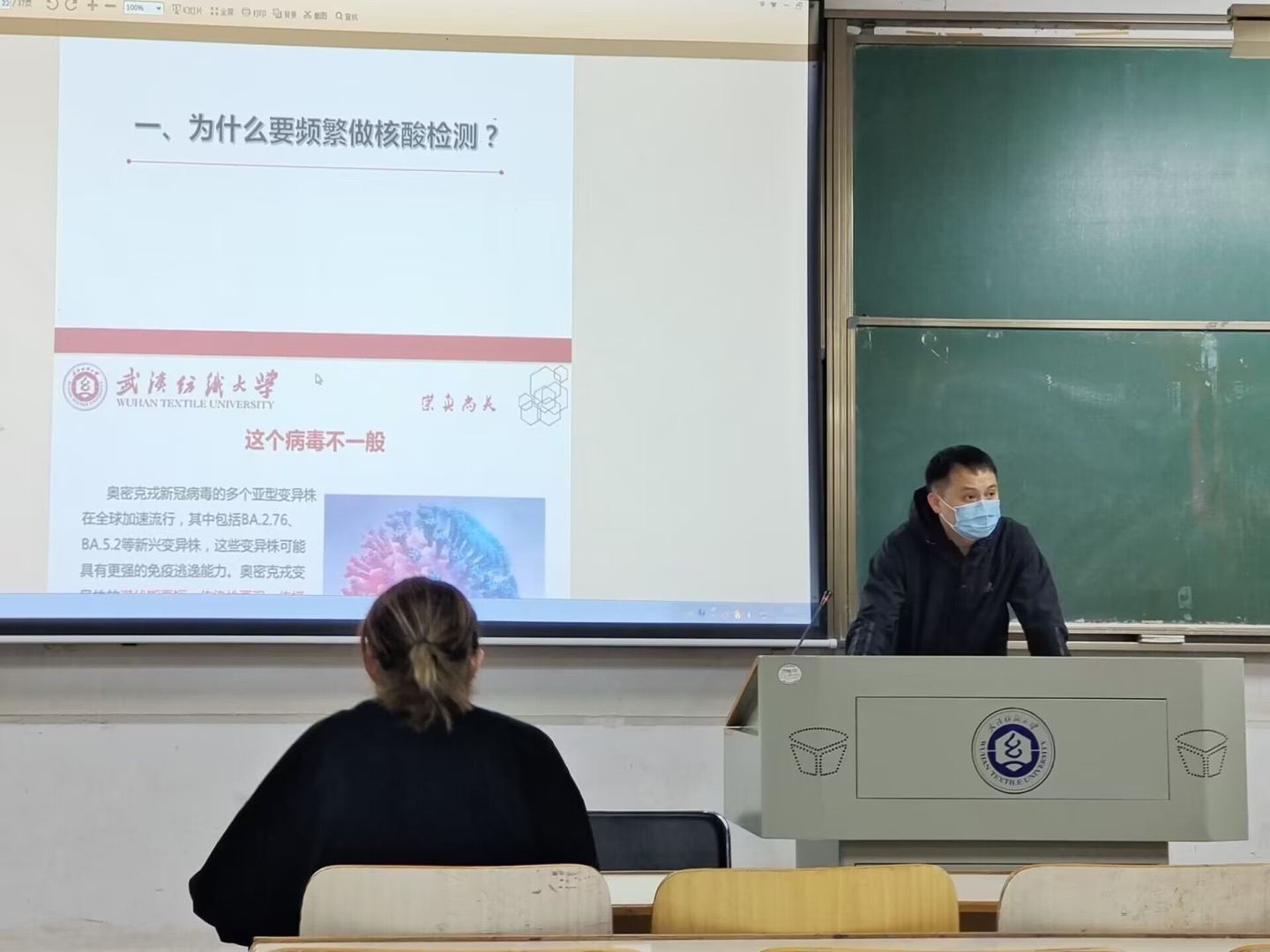 同时,老师们继续教育引导同学们关注武汉近期疫情,引导学生了解奥密克戎的风险性,向学生强调每日核酸、每日健康打卡的必要性。做好疫情辟谣工作,增强辨别谣言的能力,提高学生健康素养,增强疫情防控能力,筑牢校园防疫屏障。