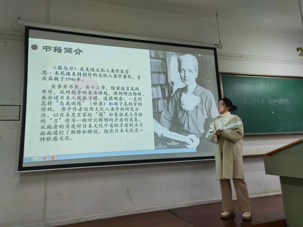 服设12104班的曾佩珊向班级同学讲述了她对《我与地坛》这本书的阅读感悟,感叹“生命的渺小,存在的伟大”。