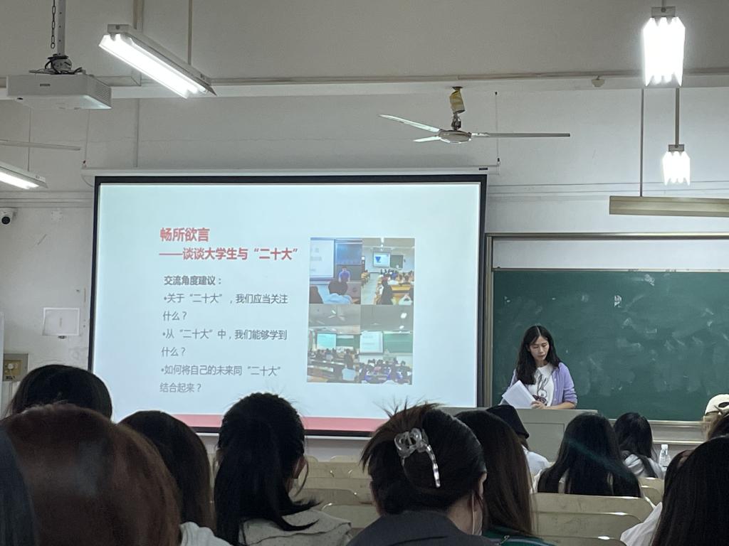 学习会上,研究生辅导员夏菡带着同学们探讨“关于二十大,我们应当关注什么”、“从二十大中,我们能够学到什么”、“如何将自己的未来与二十大结合起来”等问题,将现场聆听党的二十大报告与以往研读理论书籍、学习习近平同志讲话的理解感悟相结合。激励广大服装青年投身强国征程,作出应有的贡献。