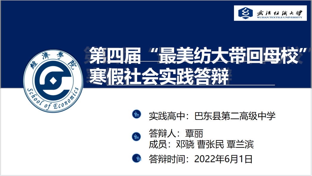 经济学院的覃丽同学也在第四届“把最美纺大带回母校”活动中荣获校级一等奖。她通过展示、讲解答辩幻灯片向同学们分享活动经验。覃丽团队在整个活动中分工明确,为参会同学们展示了一次流畅完整的活动过程,为我院立项团队成员提供了丰富的经验和诸多可借鉴的方法。