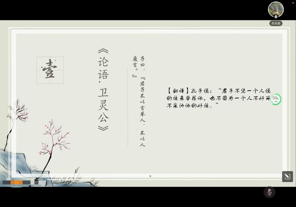 在本次活动中同学们积极踊跃报名分享,共有六组同学进行了他们的金句讲解,内容丰富,对《论语》名句理解透彻,沉浸式的朗读和解析,让大家更深入地体验了《论语》所带来的魅力。