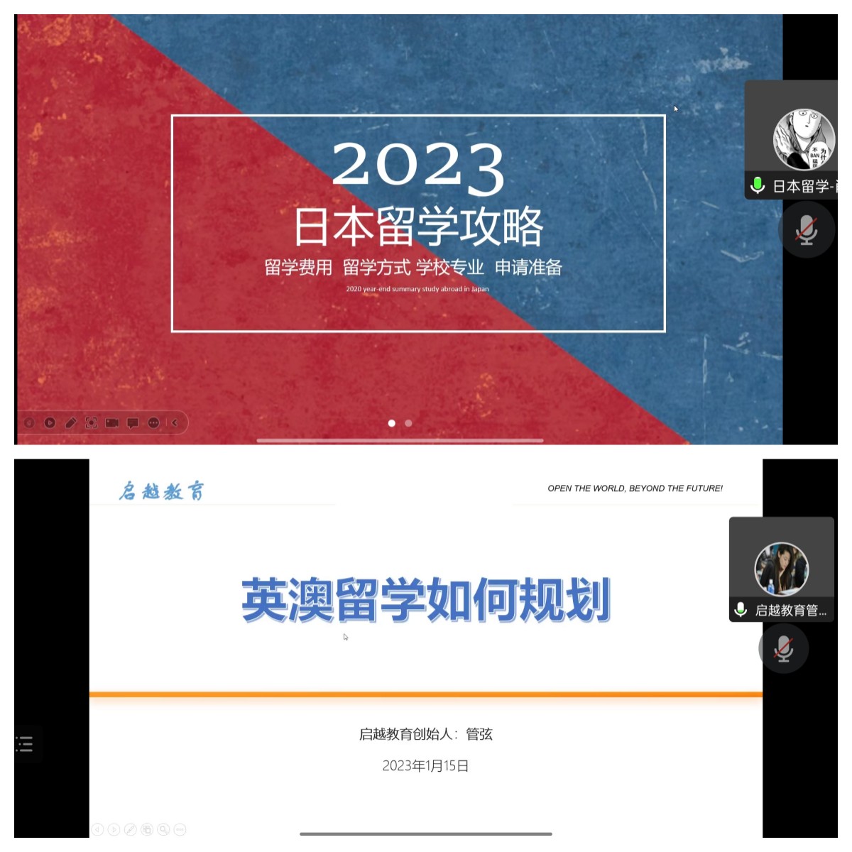 “考研后,赋能加油站”活动第二场,启思越见教育创始人管弦联合日本留学资深老师肖慈开,为同学们带来“2023年秋季留学国外名校录取冲刺”讲座,与大家详细分享了与服装专业相关的日本、英国澳洲等国外学校的申请情况。