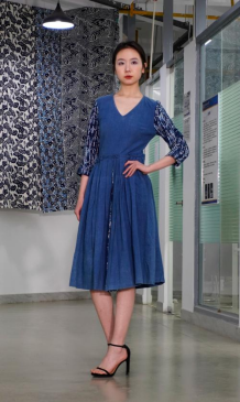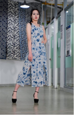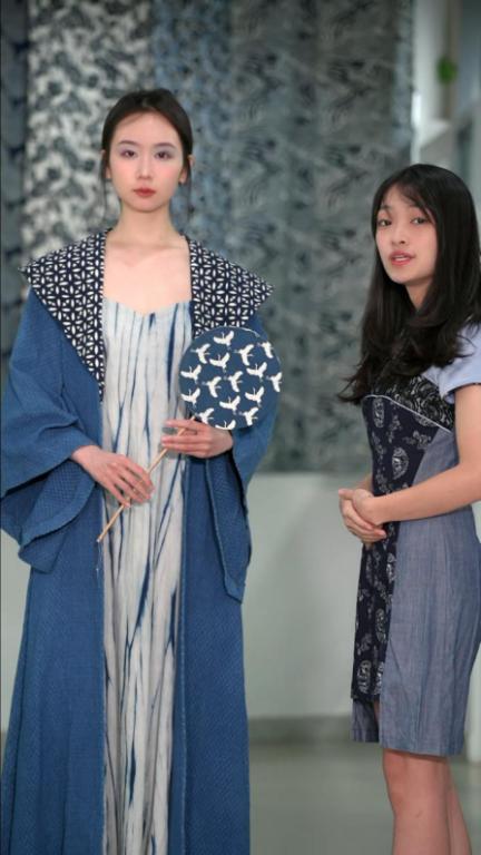 的模特们充分展示了蓝染服饰独特的色彩和优秀的制作工艺,为观众呈现了更清晰、更真实、更沉浸的直播效果。