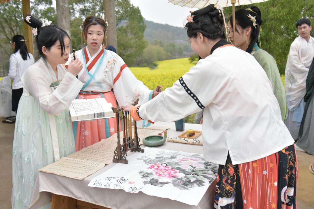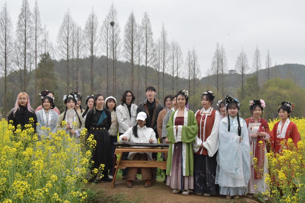 非物质文化遗产是优秀传统文化在当代的活态传承,为了让青年学子近距离接触非遗。3月19日上午,我院“声色纺大”诵读协会和“自然有礼吧”礼仪协会骨干学生,走出校园,赴马鞍山森林公园太渔桥畔的油菜花海,与华中科技大学的学生共同开展了“渔桥浪金”户外非遗活动。