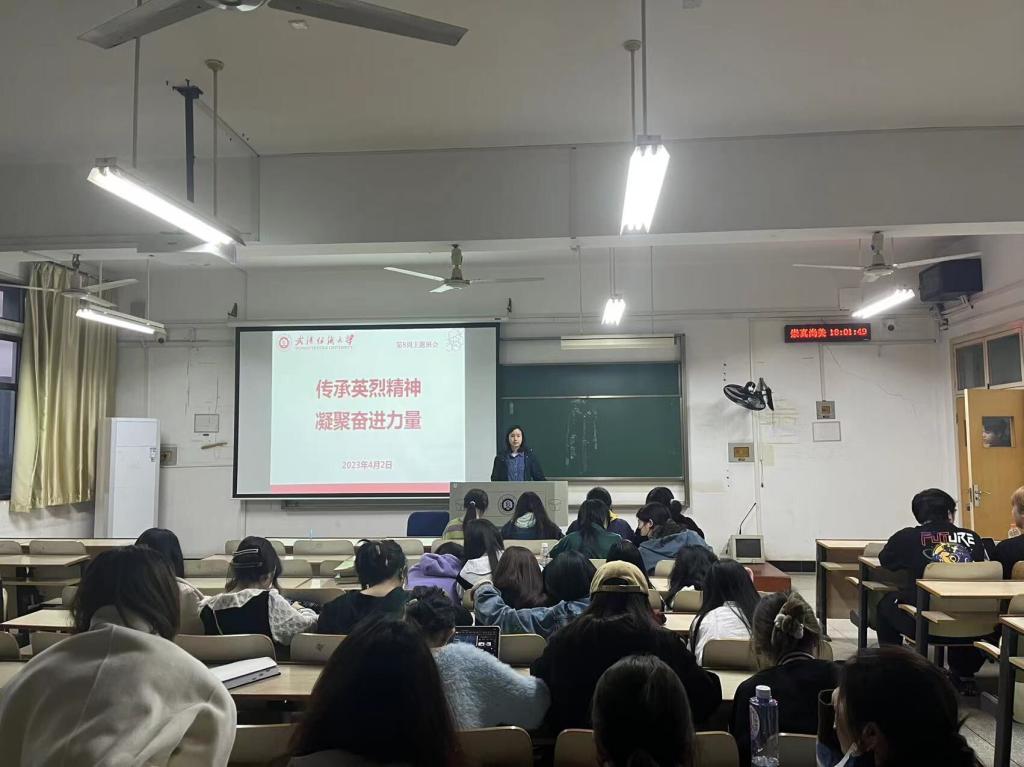 班会上,各年级辅导员、班主任开展了以“传承英烈精神 凝聚奋进力量”为主题的班会,向学生宣传“2023·崇尚·清明祭英烈”主题活动,引导学生通过“网上献花”的方式缅怀英烈、学习英烈、捍卫英烈。
