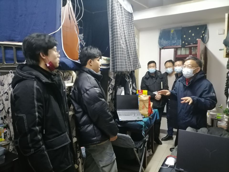 为充分了解学生返校及住宿情况,2月12日下午,百合小说 党委书记杜新年、院长陶辉、副院长江学为、副院长王柯、党委副书记郭泰辰集中前往学生宿舍看望返校学生,对学生表示慰问和关怀。
