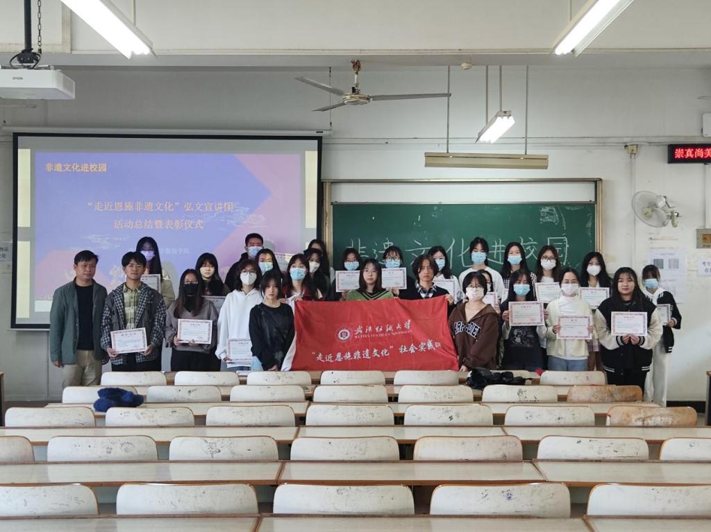 活动的最后,宣讲团的指导老师尹俊华和张智梅一起为在“走近恩施非遗文化”社会实践系列活动工作中努力传播优秀的非遗文化弘文宣讲团讲师团成员及践行志愿精神的“优秀志愿者”颁发荣誉证书。