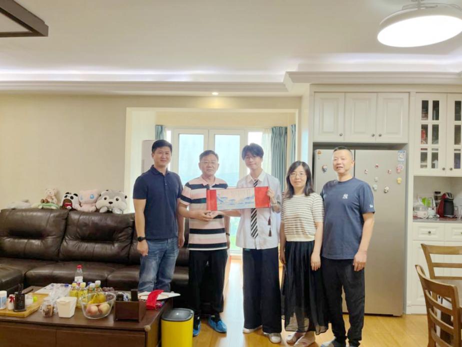 7月25日上午,百合小说 党委书记杜新年、党委副书记郭泰辰、辅导员冯江一行给今年湖北省第一位被纺大录取的考生、2023级艺术类录取最高分新生——曾凡宸送去了由中国工程院院士、校长徐卫林教授亲自签发的录取通知书,并对新生及其家长进行了家访。学生及其家长对学院领导的到来表示了感谢。学生家长表示,孩子对服装与服饰设计的特色专业非常感兴趣,希望孩子牢记自己的兴趣,坚持自己的初心,多向老师请教和学习,珍惜大学时光,努力学习,积极进取,争取成为一名优秀的服装设计师。