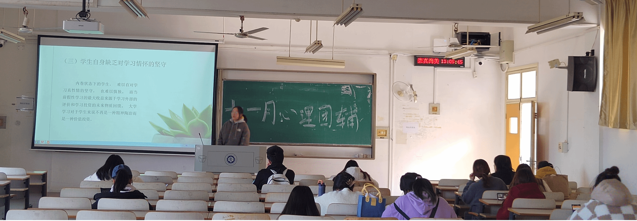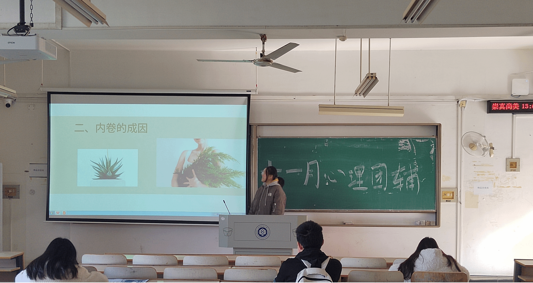 当代大学生群体中普遍存在着“卷又卷不动,躺又躺不平”的现象,实际上也是大学生内心驱动力与外在执行力之间的矛盾,由于就业形势严峻、考研考公压力大,导致“内卷”在大学校园屡见不鲜。她从典型的大学生心理咨询案例出发,分析“内卷”现象的成因和对大学生心理健康产生的不良影响,并提出具体建议,引导在座各班心理委员学会从学校、家庭、个人三个层面采取相关应对措施。