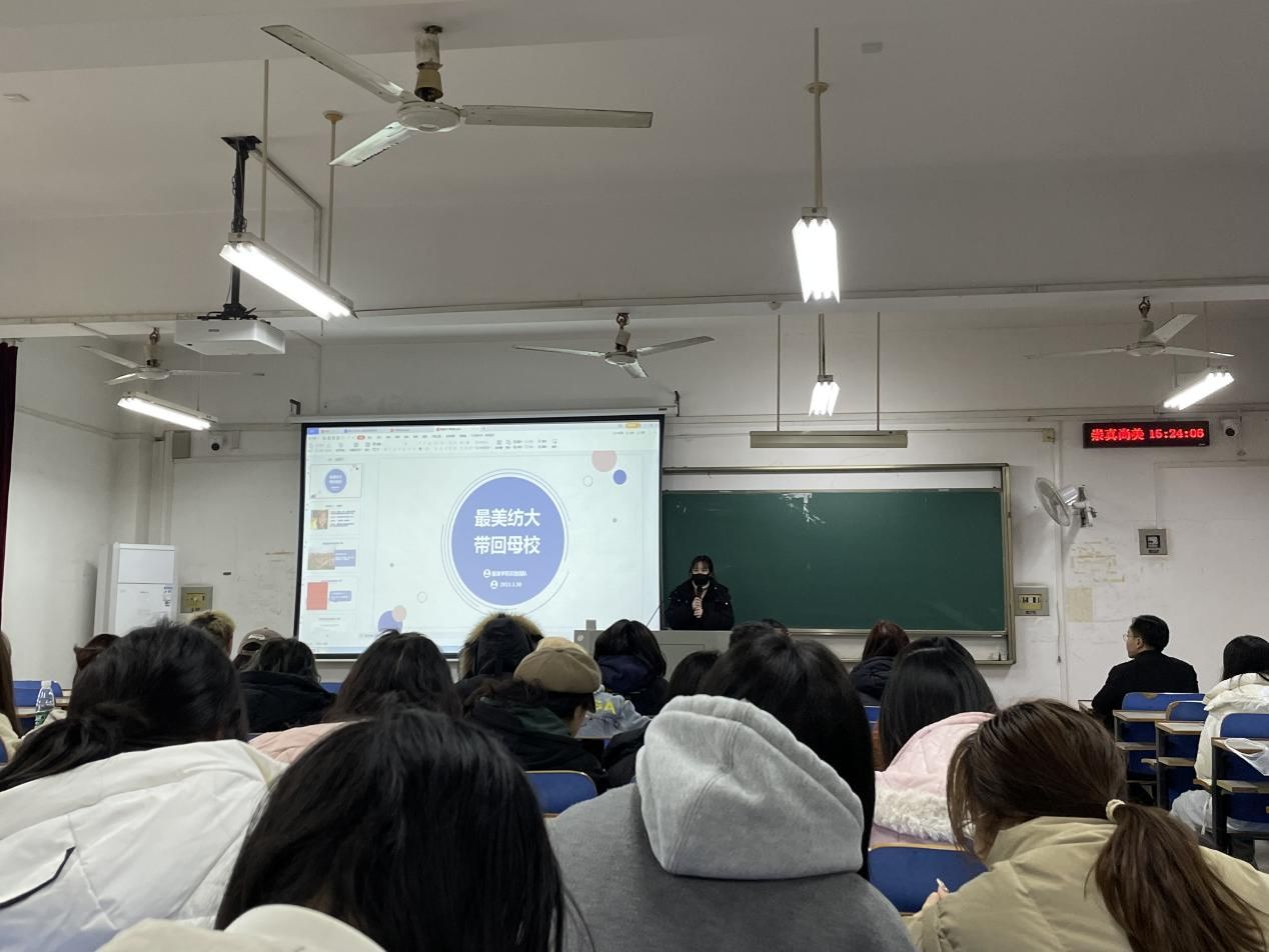 208教室举行了“第五届把最美纺大带回母校”社会实践培训交流分享会,会议旨在为获得“第六届把最美纺大带回母校”社会实践立项的我院团队给与全方位的指导和培训,此次培训会议特邀在“第五届最美纺大带回母校”社会实践活动中获得校级一等奖的团队,会议由学院辅导员曾琦老师主持。