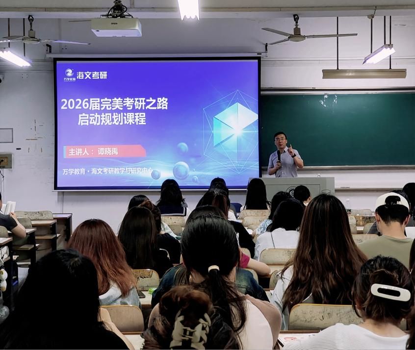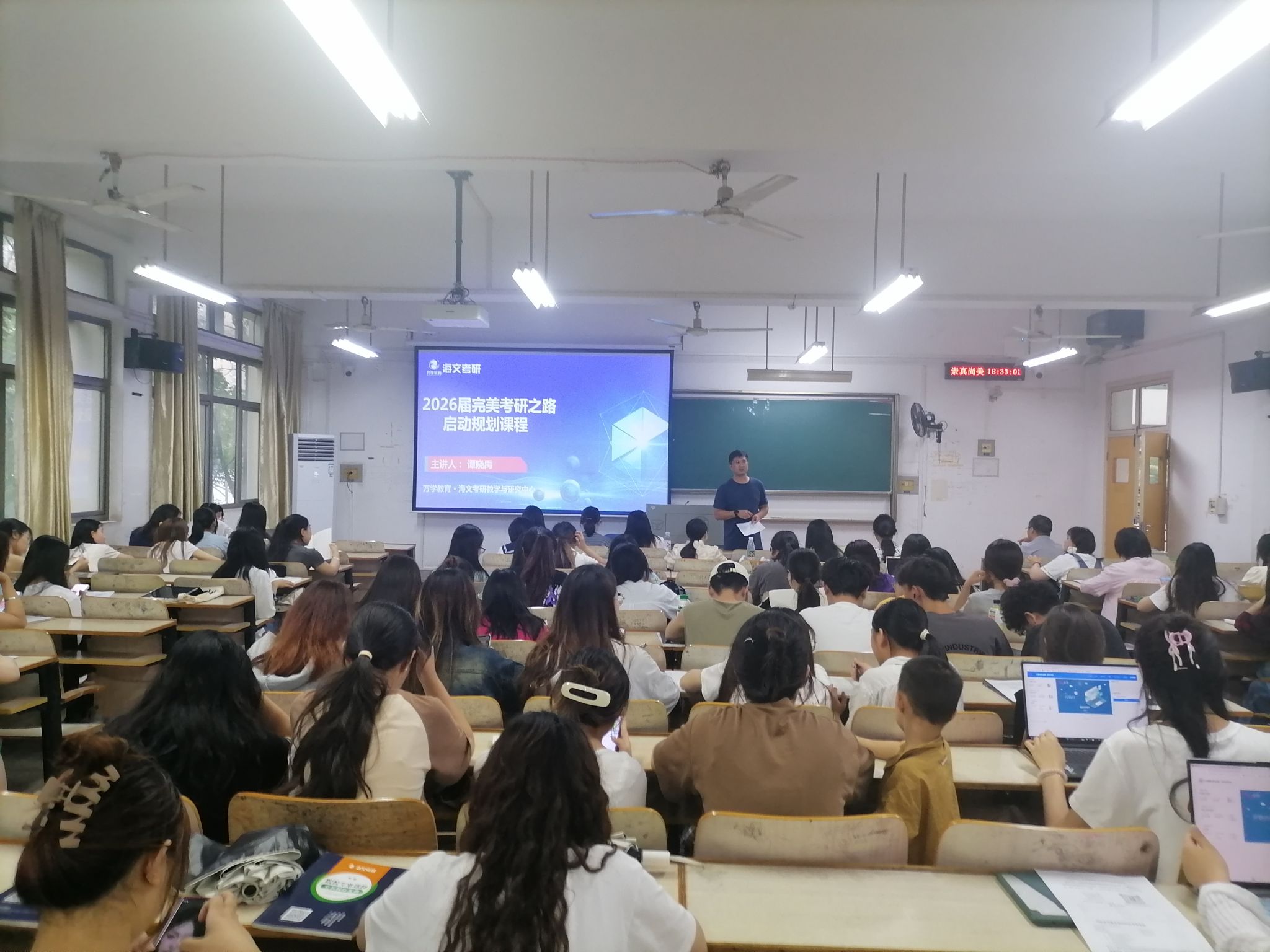 于6月16日在尚知楼5-209教室开展了2022级第一次考研动员大会。本次主讲人为万学教育湖北分校校长、全国顶级考研辅导专家谭晓禹老师,2022级有考研意愿的100余名学生参加了本次动员会,会议由学院党委副书记郭泰辰主持。