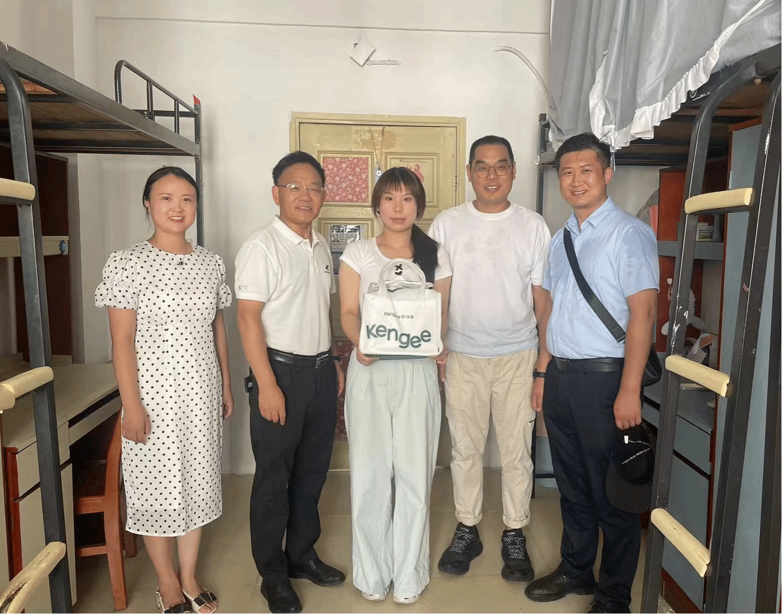 党委书记杜新年、副书记郭泰辰和辅导员一同前往学生宿舍,为过生日的吴同学送上了蛋糕和寄语。杜新年祝福吴同学生日快乐,并希望能够在纺大的每一天都甜蜜幸福,拥有无悔的青春和幸福的大学时光。