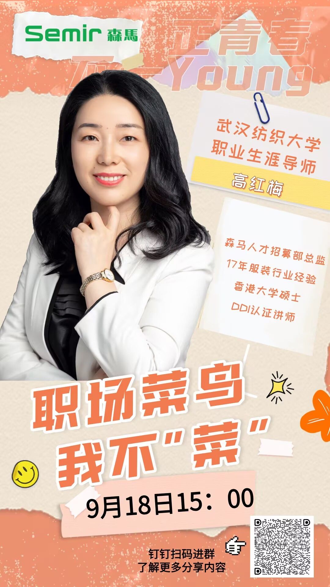 9月19日在线上举行企业高管报告会,讲述大学生职业生涯规划和就业指导。本次活动特邀国内知名服装品牌森马人才招募部总监高红梅,为大四毕业生带来了一场主题为“职场菜鸟我不菜”的职业生涯课。此次活动旨在帮助学生更好地理解行业趋势,明确职业目标,规划未来发展方向,百合小说