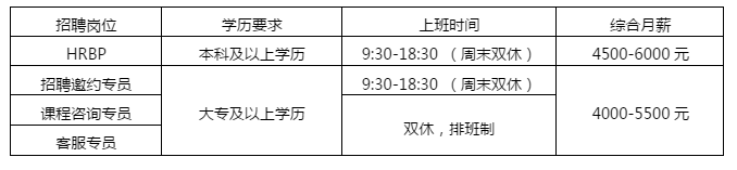 月度综合薪酬:6000-9000元/月(实习期与正式员工同薪)