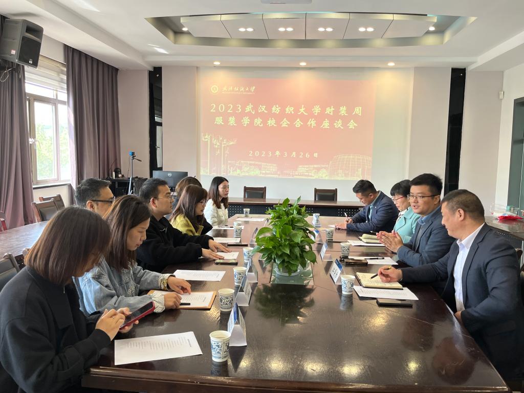 副院长江学为参加座谈会,荆州市红叶针织服饰有限公司、宁波太平鸟时尚服饰股份有限公司、深圳万旗服饰有限公司、浙江敦奴联合实业股份有限公司、武汉顶耀贸易有限公司、广州市原上服饰实业有限公司、武汉爱帝针纺实业有限公司等7家企业应邀出席座谈会。座谈会由服装学院党委副书记郭泰辰主持。